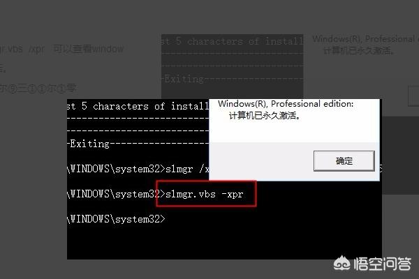 5、在再输入 slmgr.vbs /xpr 可以查看windows是否永久激活。