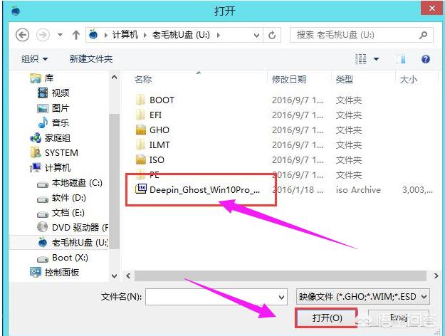 此时会弹出一个查找范围窗口,我们只需打开启动u盘,选中win10 iso系统镜像文件,点击“打开”按钮