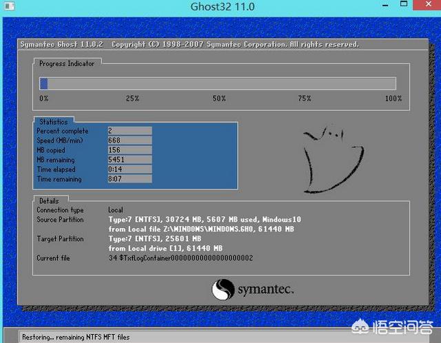 完成上述操作后,程序开始释放系统镜像文件,安装ghost win10 gho镜像系统。我们只需耐心等待操作完成并自动重启电脑。