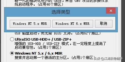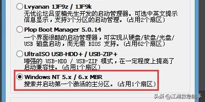 6在弹出的窗口中点击选择“windows NT5.x/6.x MBR”,然后点击下方的“安装/配置”