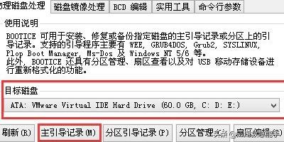 5在bootice界面中,首先点击“目标磁盘”进行磁盘选择,选定后点击“主引导记录”