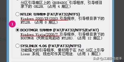9在弹窗中,win7用户点击选择“bootmgr引导程序”,xp用户则点击NTLDR引导程序,选完点击“安装/配置”