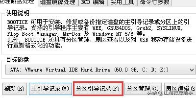 8返回到bootice工具的主菜单,目标磁盘保持不变,点击“分区引导记录”