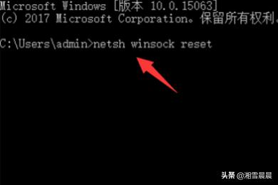 6、然后输入 netsh winsock reset 回车,完成以上操作后重启电脑。