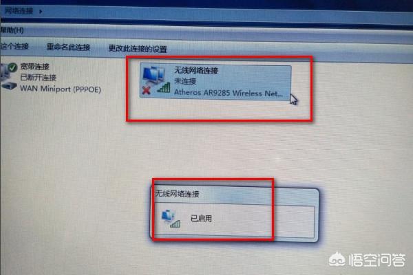 5、如图所所示,提示已启用后,无线网络连接的图标从灰色变成亮色了,这样就可以在电脑上输入无线账号和密码进行连接了WiFi了。