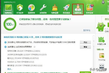 1、打开“360安全卫士”,点击程序主界面中的“电脑专家”选项卡。