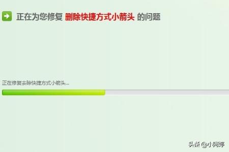 5、 接着程序开始进行自动修复操作。操作完成后,就会发现图标上的小箭头被删除掉了。