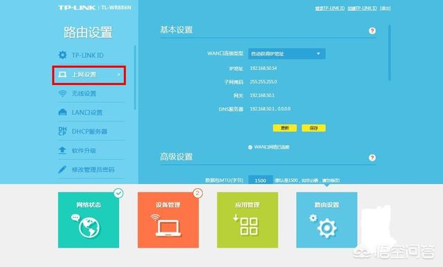 4、点击“路由设置”,左边有一列菜单,只需要设置好4项:上网设置、无线设置、LAN口设置、DHCP服务器,如图: