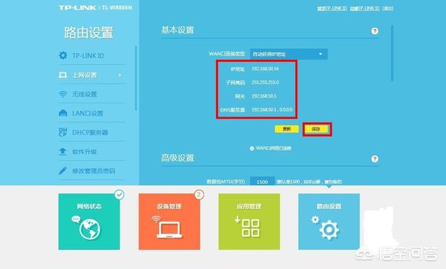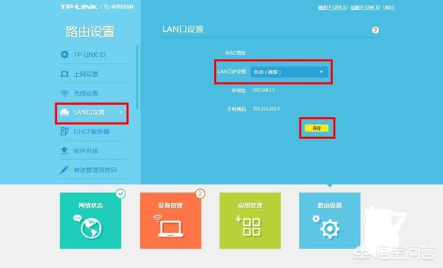 7、LAN口设置可以采用默认设置,点击保存,如图:
