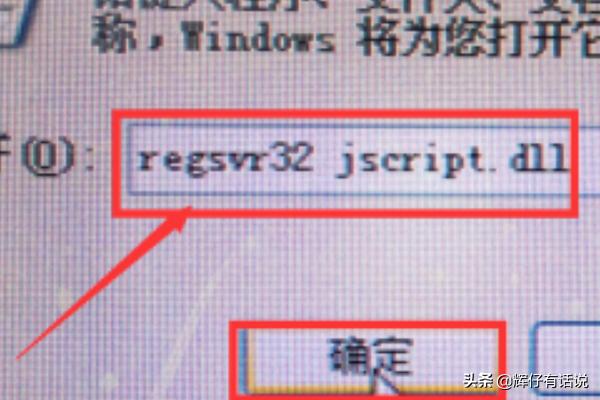 第八步:在出现的“运行”中输入“regsvr32 jscript.dll”后,点击“确定”标签。