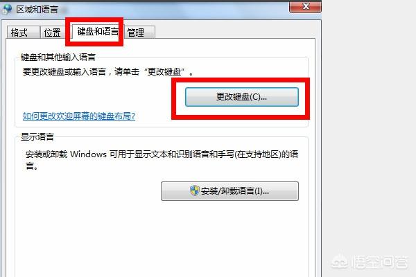 4、在区域和语言设置窗口里点击“更改键盘” 如图