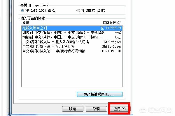 6、选择切换输入语言的快捷方式 然后点击“确定” 就完成输入法的快速切换的快捷方式了 如图