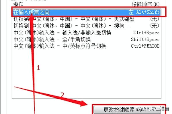 6、在文本服务与输入怨言选项页面,选中“切换各种语言”,然后点击“更改按键顺序”。