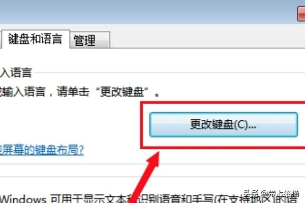 5、键盘与语言栏位,我们选择“更改键盘”按钮进入。