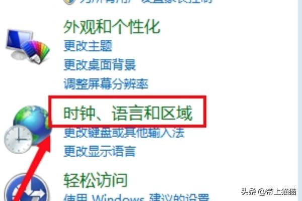 2、在控制面板设置窗口里点击“时钟、语言和区域” 如图