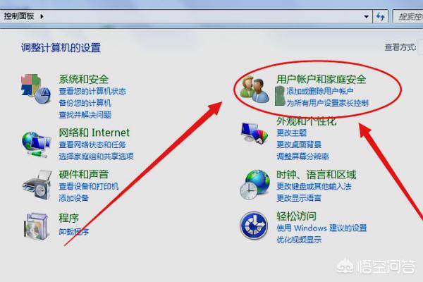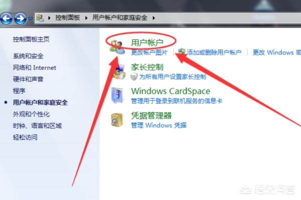 2.在弹出的控制面板中点击用户账户和家庭安全,会弹出用户账户和家庭安全窗口