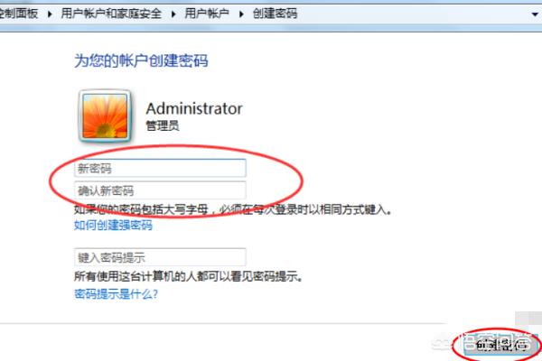 4、输入两遍需要设置的密码,如果担心忘记密码可以设置密码提示,设置好后点击“创建密码”就可以完成了。