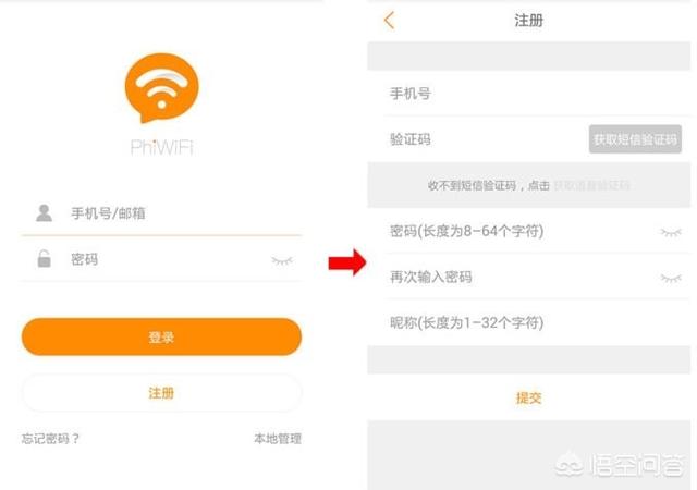 下面是斐讯路由APP的界面,可以用手机或邮箱注册帐号,用于远程登录路由管理设置用的。注册完,就去登录路由,然后会自动提示找到新的设备,问你是否需要绑定新设备,点击绑定后,就能在外面远程控制路由器了。如果不注册帐号,可以点右下方的”本地管理“,直接用管理员帐号登录本地路由器设置 。