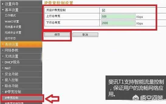 PS:这里的宽带控制,需要根据自己家的网络环境而设置,比如家用拉的是8M网线,上图设置的是最好上线2000K(相当2M0),最低上线500K,相当最低都会为每一个用户预留半M网络资源,可以有效防止掉线,大家根据说明书以及自己网络带宽调整。