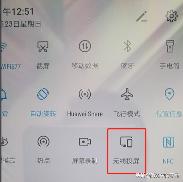9、做完这些布骤后。我们再打开手机主界面,从上下拉,找到无线投屏这项。如下图所示: