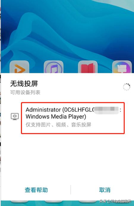 5.在华为手机上的无线投屏列表就会出现电脑的名称,点击后,在电脑上确认就可以开始投屏;