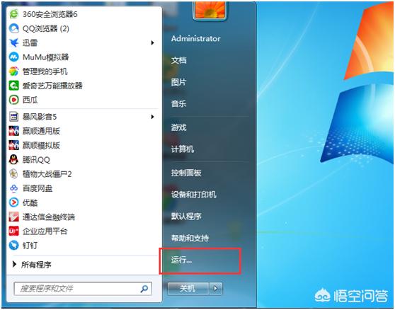 1、按下键盘左下角“windows”建,或者点击系统“开始”,在菜单中打开“运行”程序。