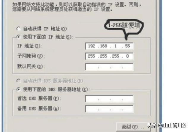 2、如果不能获取,就手动设置IP,你可以去别人(和你同在一个网络的用户)那看到你们所在网络的网关、IP和DNS码,记下来,然后设置你的网络属性(双击本地连接——属性——双击TCP/IP协议——点“使用下面的IP和使用下面的DNS码”),网关整个网络都是一样的,IP地址不能和别人重复也不能和网关同样,你试试随便设置一个IP,如果最后你点确定的时候,系统提示你“网络上有重命名或则此IP已在网络上使用”,那么就换个IP再试试,如此反复,应该能获取到IP了。