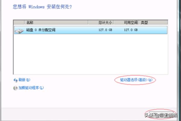 6、第六步 安装操作系统之前硬盘必须分区,如图点击驱动器选项(高级)建立磁盘分区。